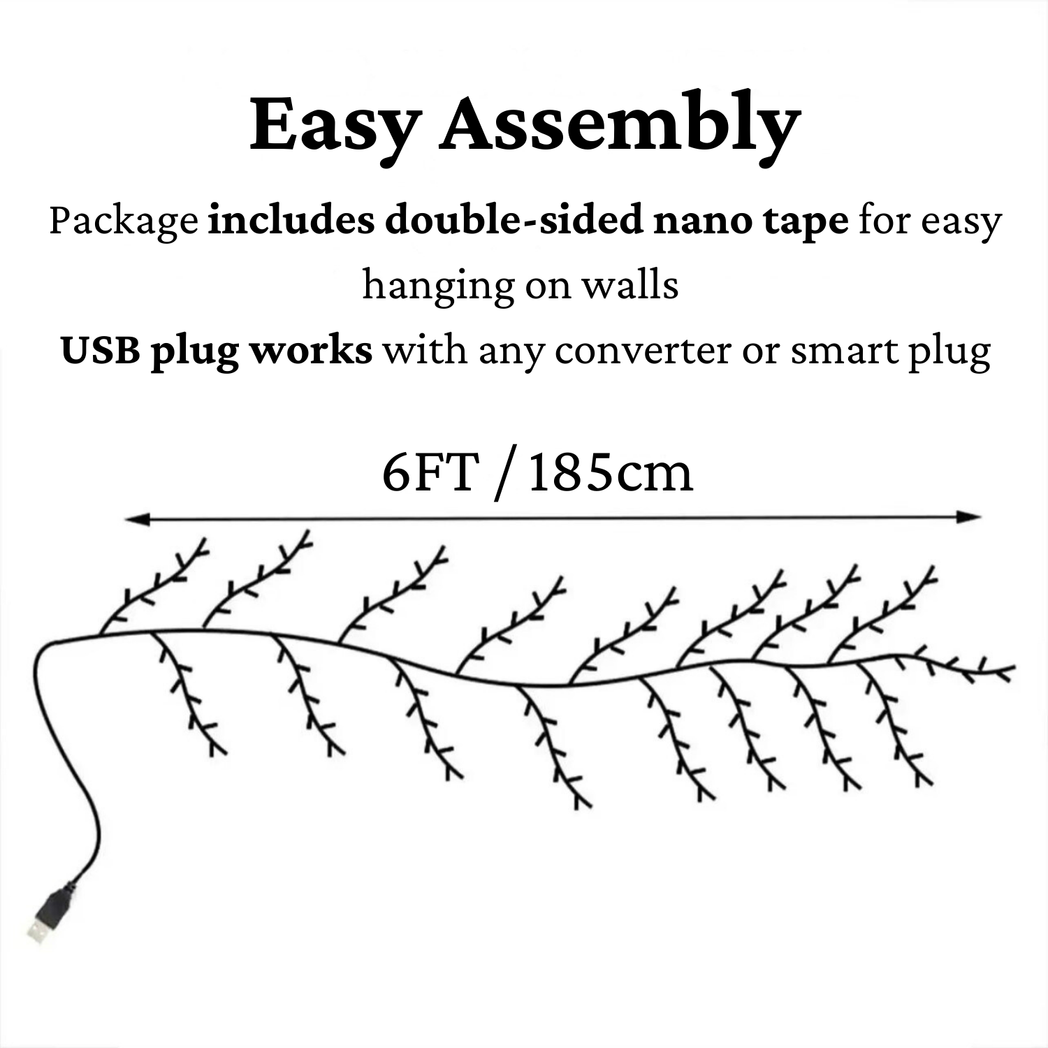 With a lightweight design and double-sided tape, the WillowGlow™ lights are simple to hang!